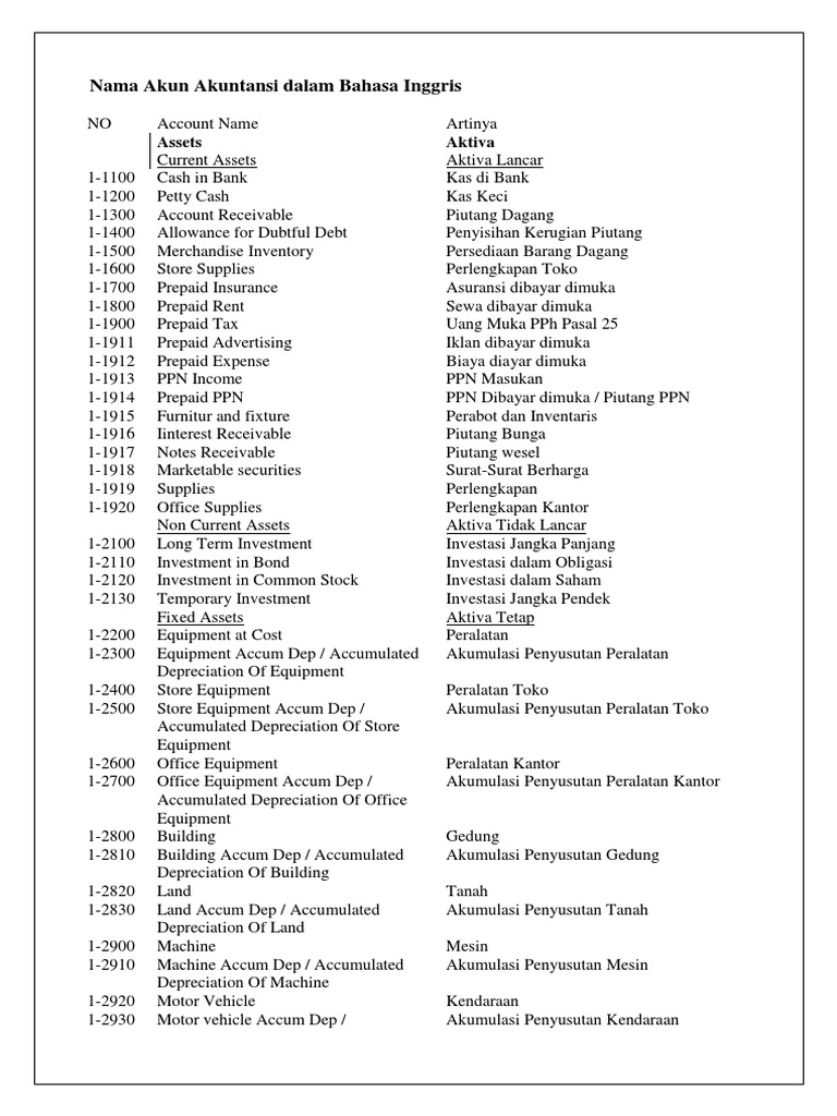 D4t4 Kul14h Daftar Akun Akuntansi Dalam Bahasa Inggris Dan Artinya