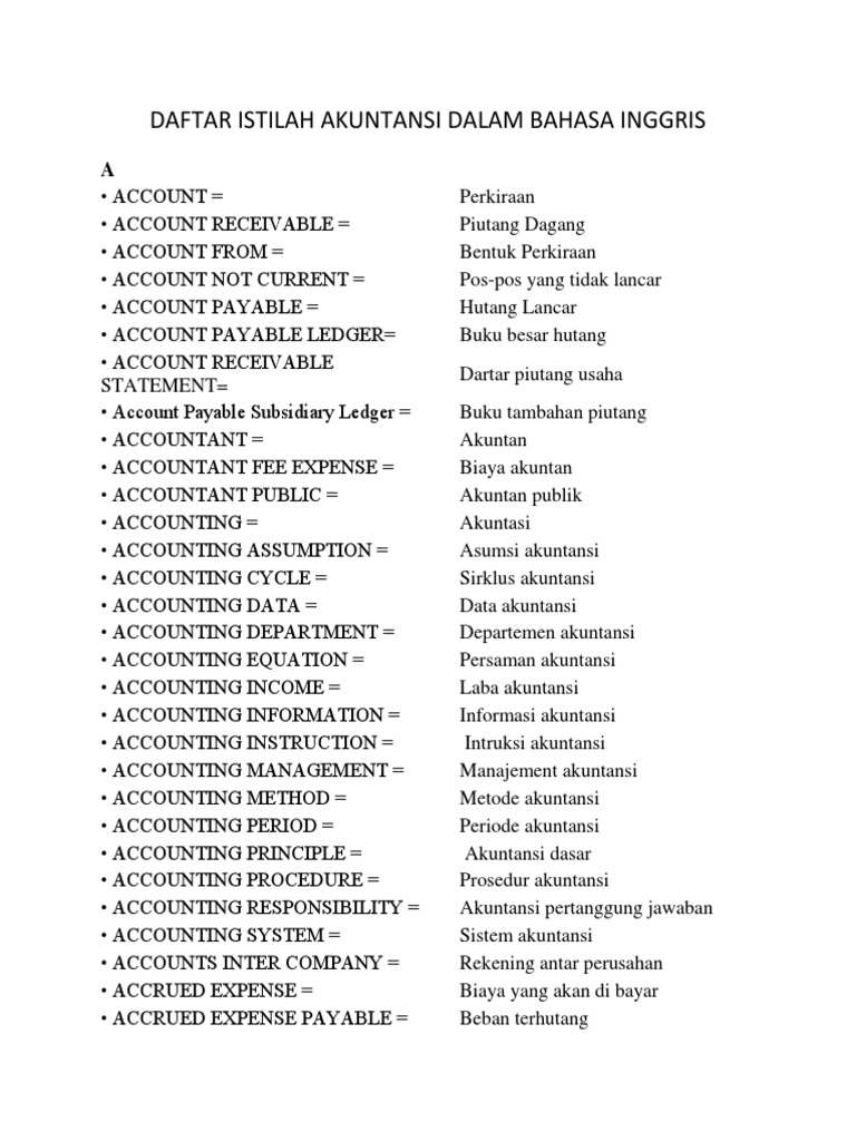Daftar Istilah Akuntansi Dalam Bahasa Inggris Pdf
